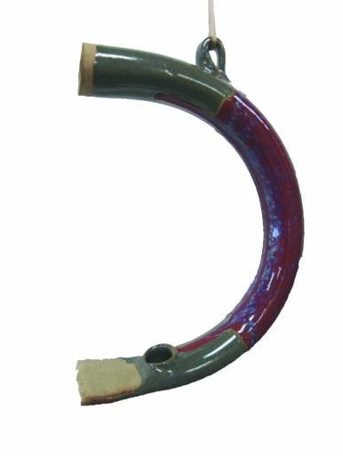 Kiln-fired and hand spun, this groovy handcrafted bird feeder will last for many years of use, while adding interest to the landscape.