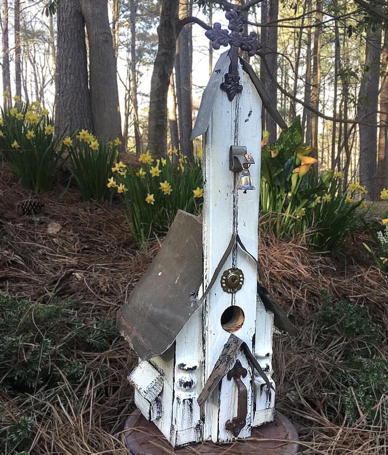 The Birdhouse Chick Unique Birdhouses Rustic Church Birdhouses- Medium